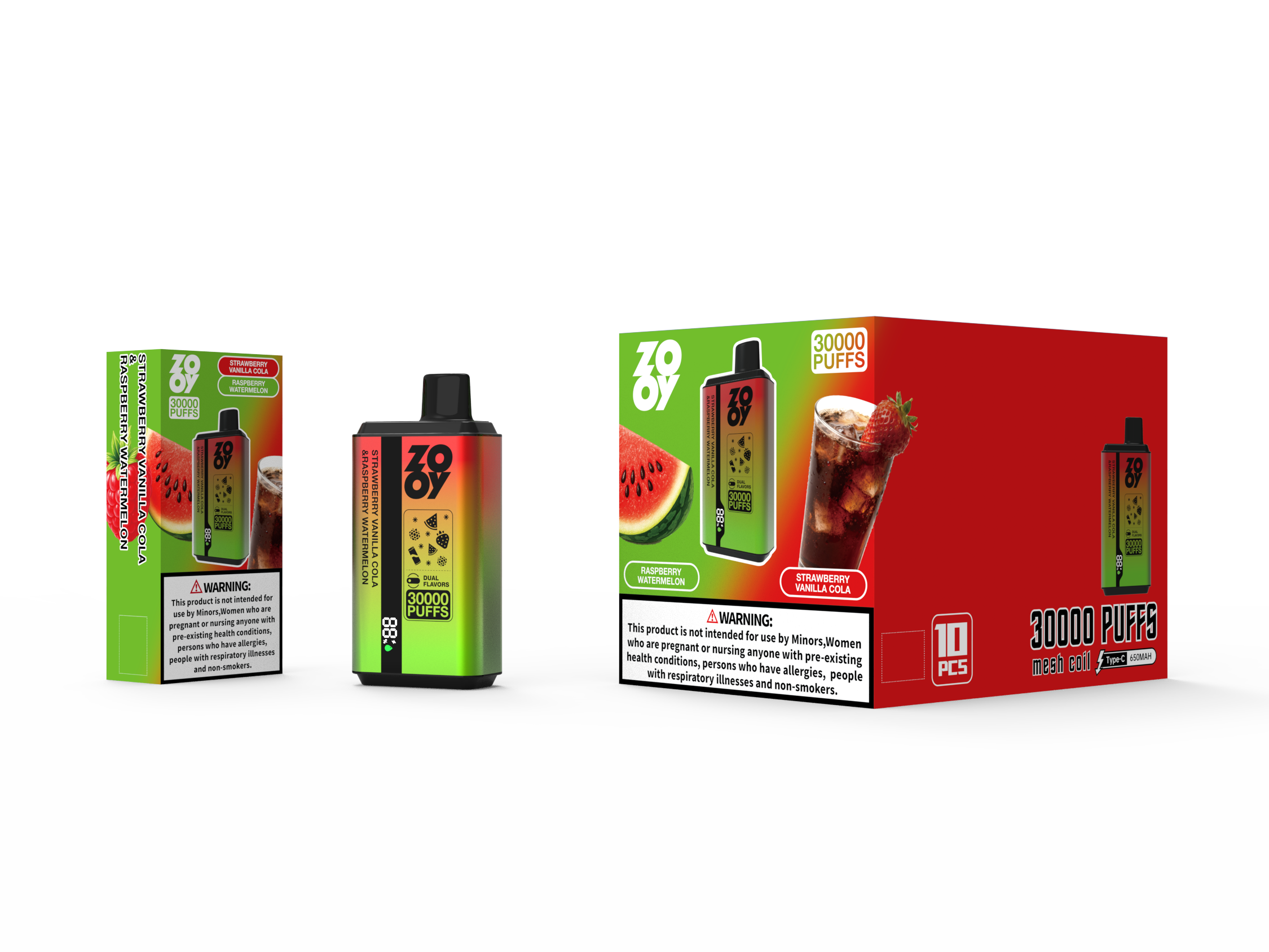 ZOOY twins 30000 2 in 1 Disposable Vape Puff 120K Dual Flavor EU Warehouse-Strawberry vanilla cola &Raspberry watermelon